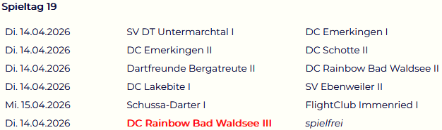 SCHAUT REIN - hier unser aktuelles Turnierprogramm, sowie die einzelenen Statistiken zum verfolgen. Auch möglich - jeden DIENSTAG - LIVE verfolgen !